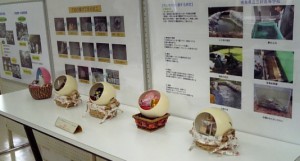 これはダチョウの卵の殻の中に細工を施したものです。徳島県立三好高校の生徒が作りました。5年くらい前の写真です。三好高校には、ちょっとした動物園くらいの動物がいます。幼稚園・小学校の子供たちが遠足に三好高校へというのもいいと思うのですが。