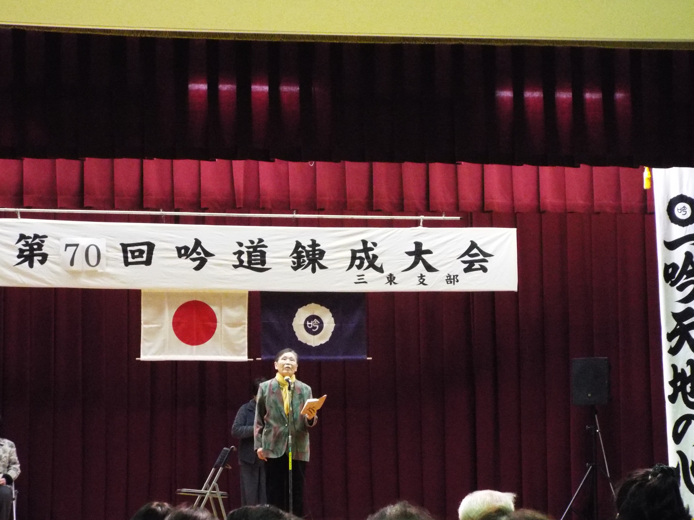 2月1日に行われた詩吟大会の写真です。失敗したかと思っていましたが、残っていました。場所は東みよし町役場・多目的ホール、54番友人と会宿す・李白を吟じました。錬成大会は1年に2回ありますので、今年で35年目ということになります。