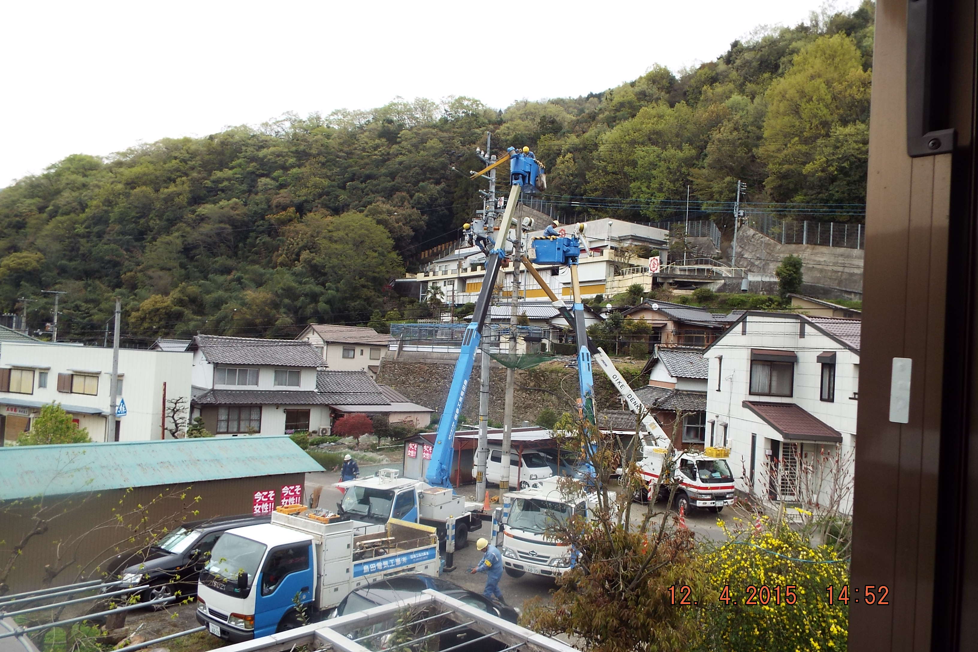 昨日の電柱工事の様子です。少しづつ少しずつ工事が行われています。今日見たら、まだ新旧2本の電柱がありました。