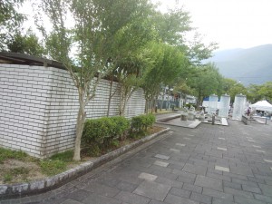 これも阿波池田駅隣のへそっこ公園です。池があって、野球帽をかぶった7匹のカエルの石像は動いていました。3つの透明の塔はLEDで輝いていました。手前の建物は池の浄化槽です。池では子供たちが水遊びをしていましたが、そんな光景は数年もなかったと思います。