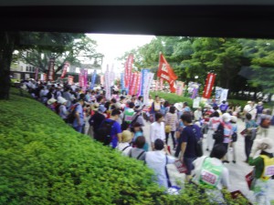 写真は広島平和公園での集団的自衛権反対運動の集会です。