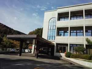 ここは、三好町の元役場です。合併して庁舎は加茂に移りましたが、広々とした立派な役場です。ここへ車を置いて、隣の神社で行われた三好教霊祠祭に参加しました。27年度は11名の新合祀者がいました。累計では855名だそうです。