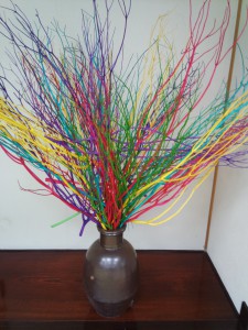 今日はチャレンジデーです。三縄公民館で体操をしました。写真は三縄公民館にあったミツマタです。今まで捨てていたミツマタの芯をカラーリングして売り出すと、人気があるとか。