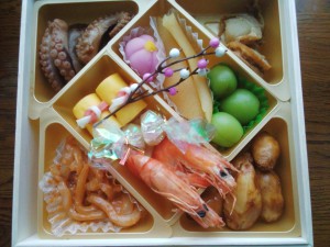去年、松と榊がほしいと言うので、持って行きました。ついでに買い物のお供をしました。今日、電話があって、餅が余っているから取りに来いと言うので、行きました。そして、お節料理をいただき、3重の重箱の1段目をもらいました。写真が1段目のお節料理です。大阪の子供が送ってきたのでそうです。81才の友達からのプレゼントです。田舎に住んでいると、お金がなくともやっていけると思ったのですが。