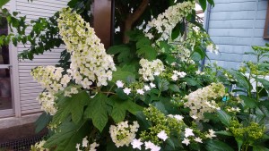 写真はカシワバアジサイ、自宅の庭で盛りを迎えています。隣にガクアジサイがあって、競っています。