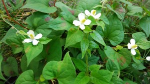 庭に咲いている十薬の花です。普通は4弁の花ですが5弁もあるのだとか。その花をラッキーというのだそうです。4つ葉のクローバーが幸せを運ぶといわれるように。部屋に飾ると消臭にもなるそうですよ。
