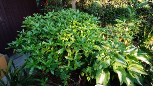 たぶんお隣さんの庭だろうと思います。この辺の人は、きれいに手入れされた庭を持っています。