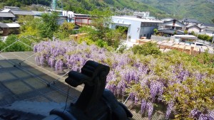 2階から見える藤の花です。つい2.3日前まで葉が出てなかったのに、