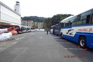 平成27年、倉敷での日本女性会議の議場です。大型のバスが何台も駐車していました。阿南で開催された時は、このような大型バスで、池田町から参加しました。