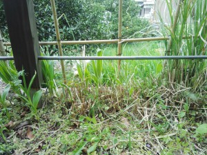昨日の写真、茅をハサミで切ると、シランの株が出てきた。茅って、強そうで案外弱いのではないか、シランは弱そうで強いじゃないかと思った。