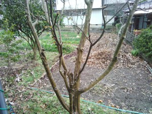 近所のプロ農家が私の畑の3分の1を使って作物を作っています。先日落ち葉が入っているのを目撃して写真に撮りました。薬草協会で1年に1回落ち葉拾いに行きますが、こんなに大量ではありません。薬草協会で取る落ち葉を大量だと思っていた私は、その量に驚きました。春には何を植えるのでしょう。とても参考になります。手前の木はカリンです。