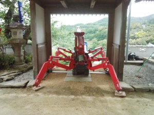 先日、医王寺へ行ってきました。山川町の山の上にあるお寺です。そこで、写真のような機械を見つけました。石段などを修理する機械なのだとか。