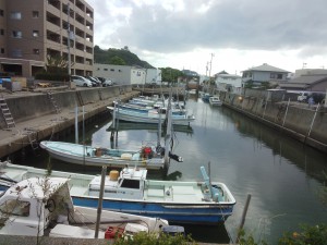 徳島駅から鳴門駅まで知っている人に出会いました。おかげさまで迷わずに合同庁舎まで行くことができました。写真は途中の景色です。さすが鳴門、船がたくさん停泊していました。遠くに岡崎城が見えます。