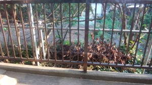 家の中から外を見ています。向うの畑でサルが1匹、何かを食べていました。何を食べていたのだろうと現場に行ってみると、腐ったカボチャだった。