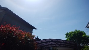 もっと北から撮影すると3本のケムトレイル散布の飛行機雲が見えましたが、太陽光線のせいで、写真には上手く写っていません。