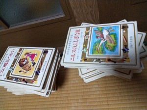 三繩小学校が新聞や雑誌、本の回収をしていると聞いて、本の整理をしています。